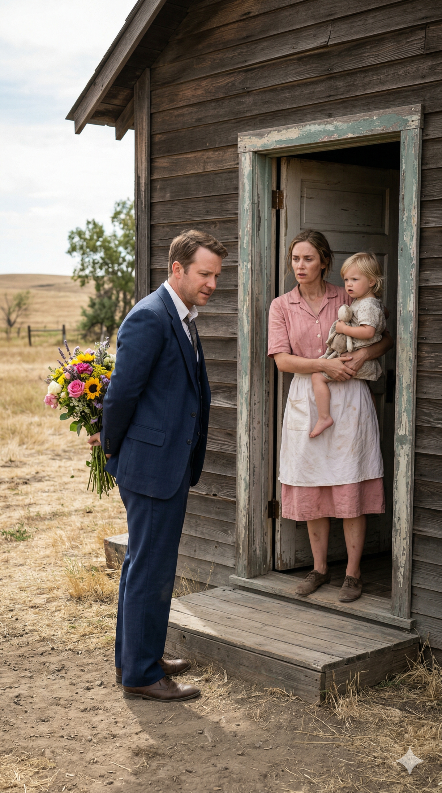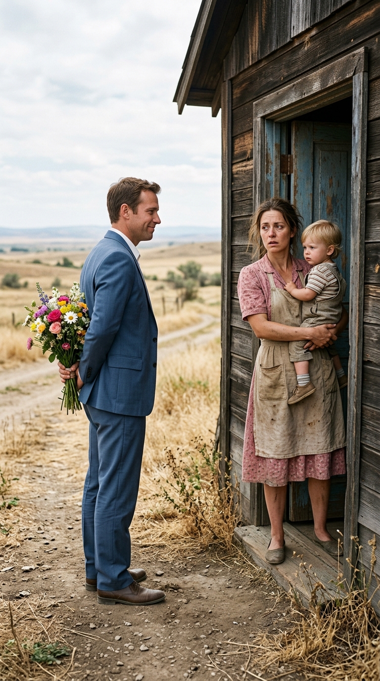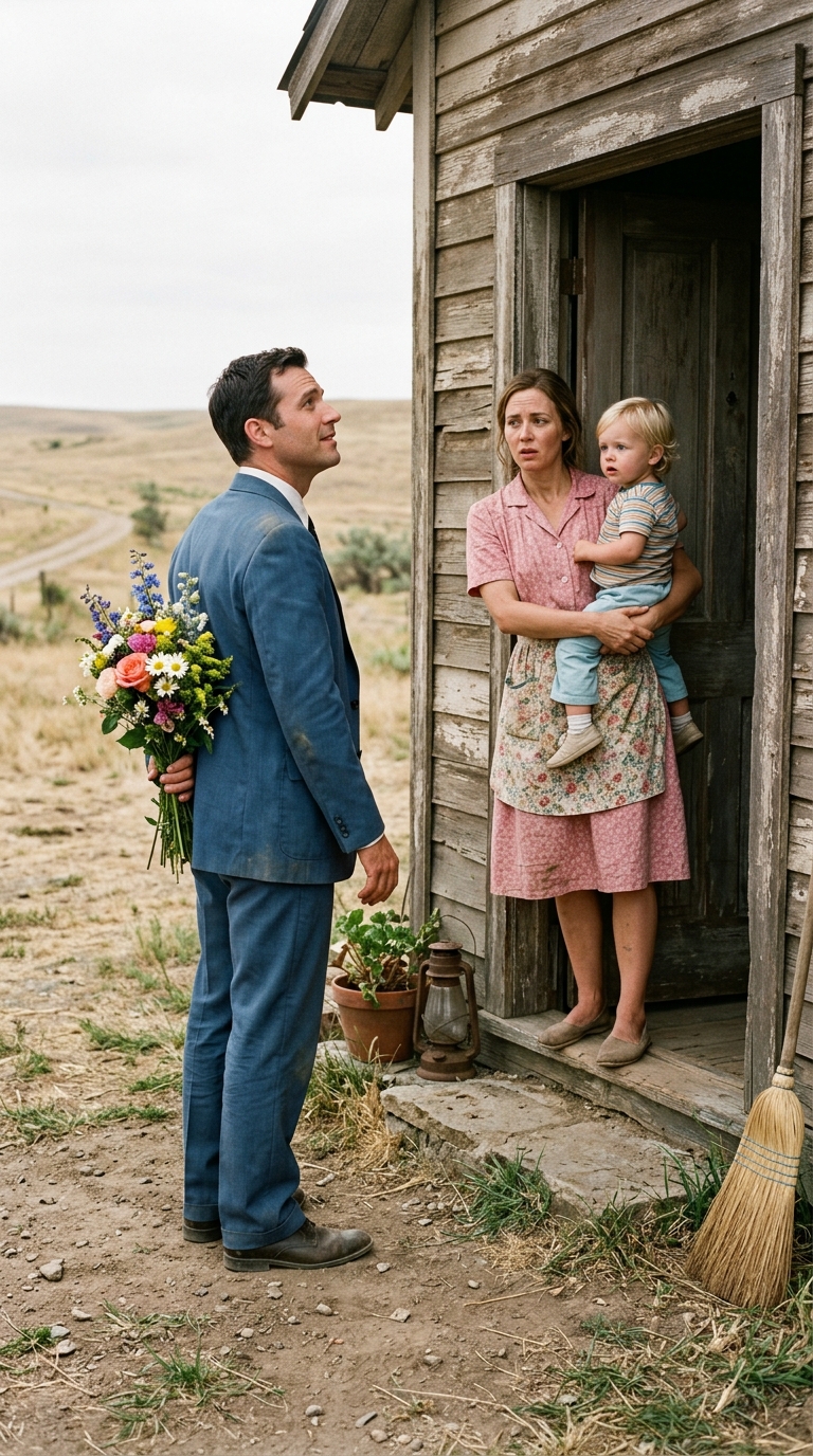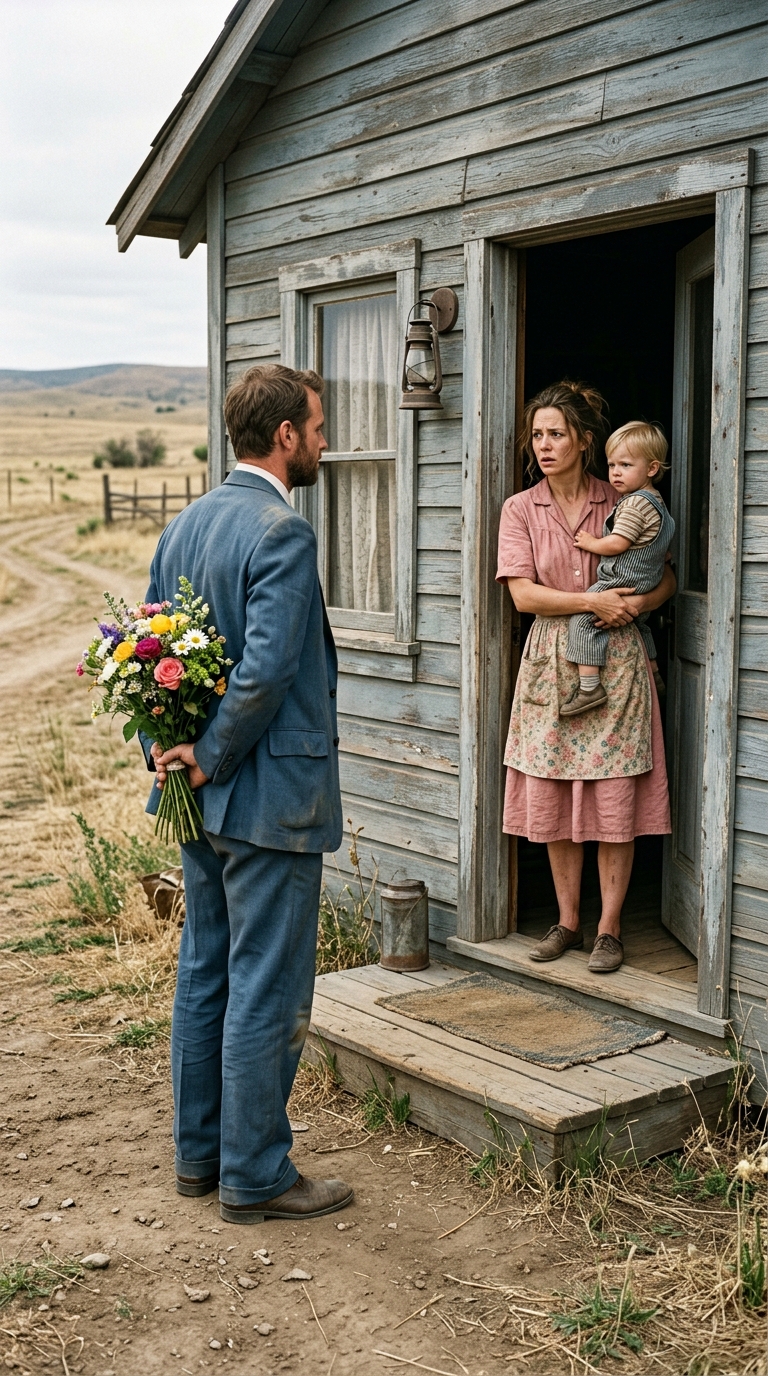 He stepped out, holding a small bouquet of wildflowers he’d bought along the way.