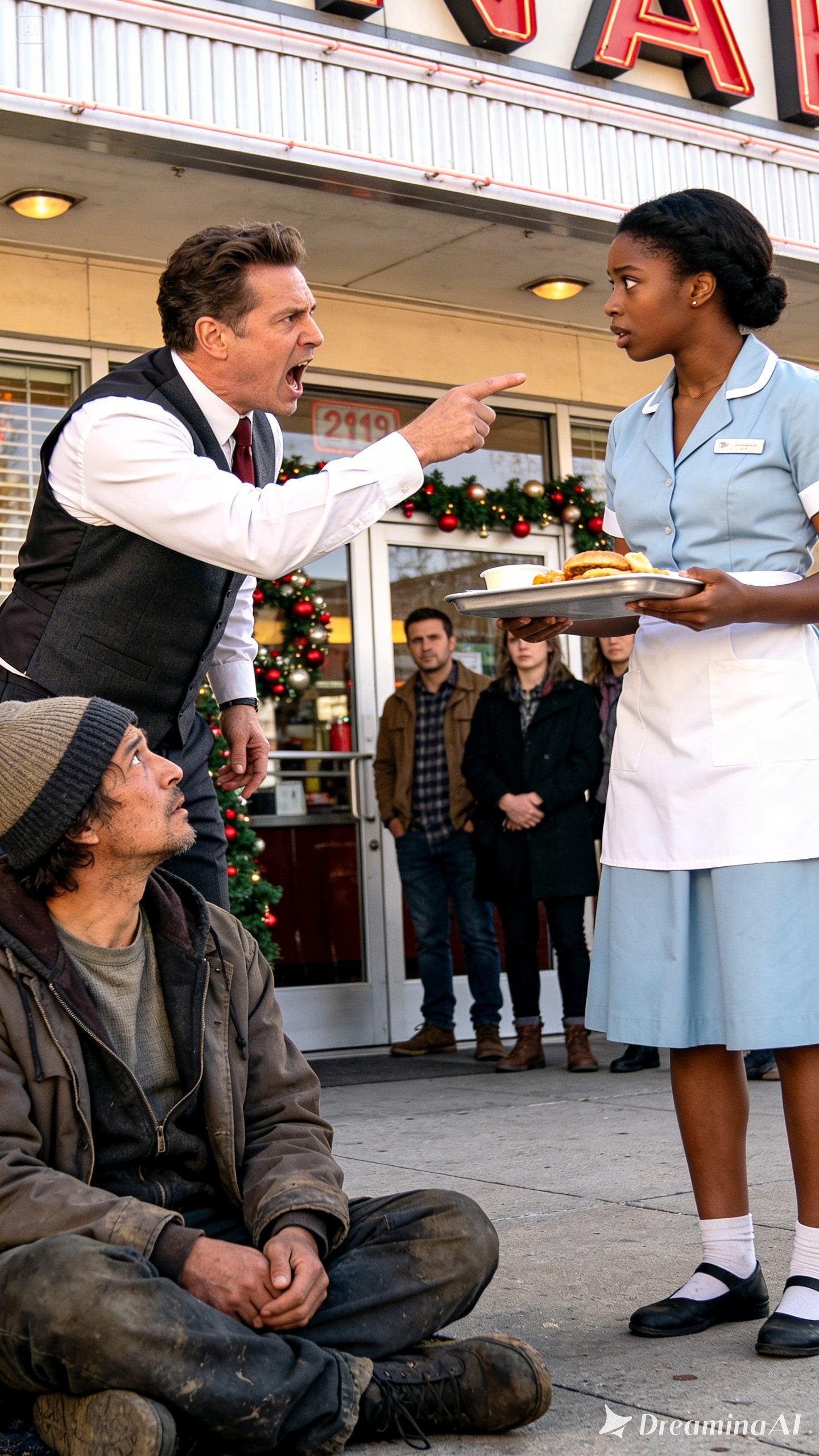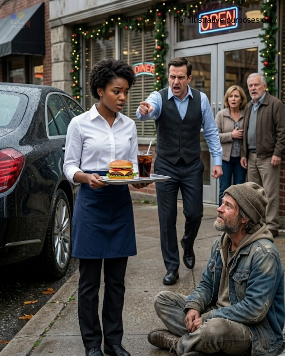 He stormed out from behind the partition, face flushed, pointing sharply at the plate. The entire diner fell silent. Even the arguing couple paused mid-sentence.