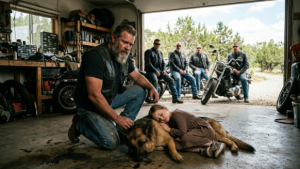 Inside the Iron Vultures’ clubhouse, twelve hardened bikers froze mid-laugh. Beer bottles paused halfway to their mouths. The jukebox played to no one.