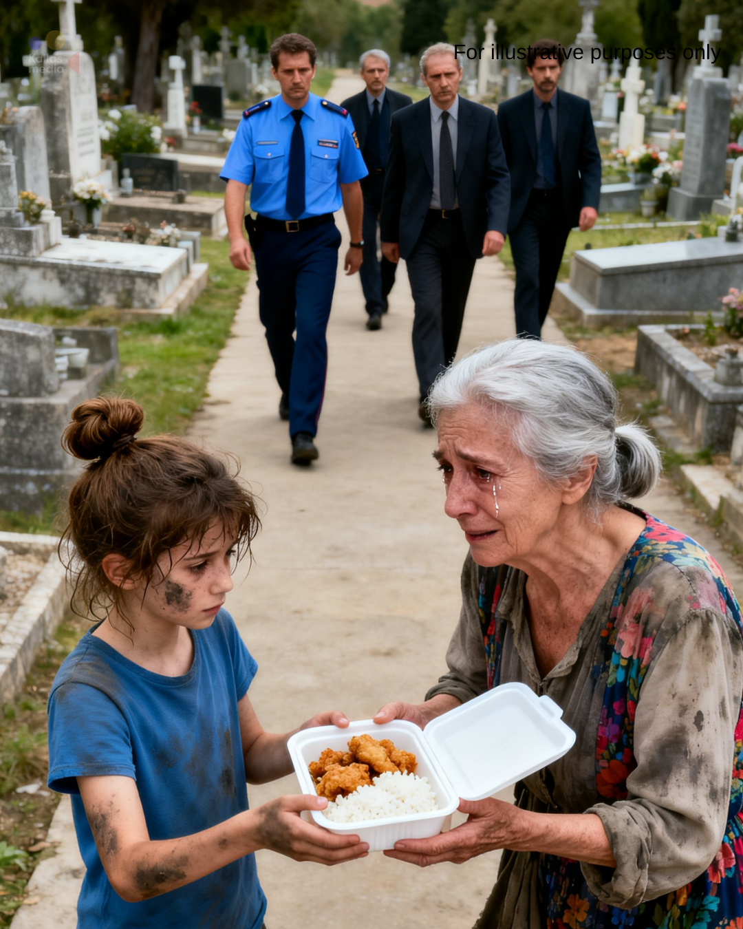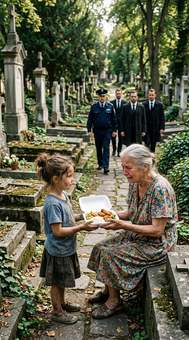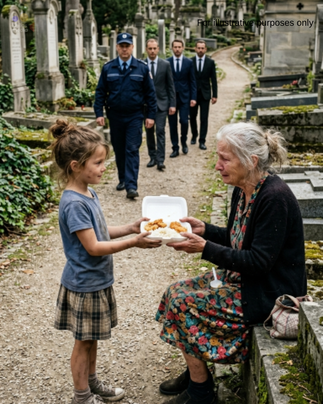 She hugged the warm container to her chest like something precious, crossed two streets, then the main road, then a small bridge, and followed a dirt path up toward Oak Hill Cemetery. The iron gate creaked as it opened, and inside, everything changed. Silence. Cypress trees. Old gravestones with fading names. Plastic flowers beside real ones, all carrying the same quiet scent.