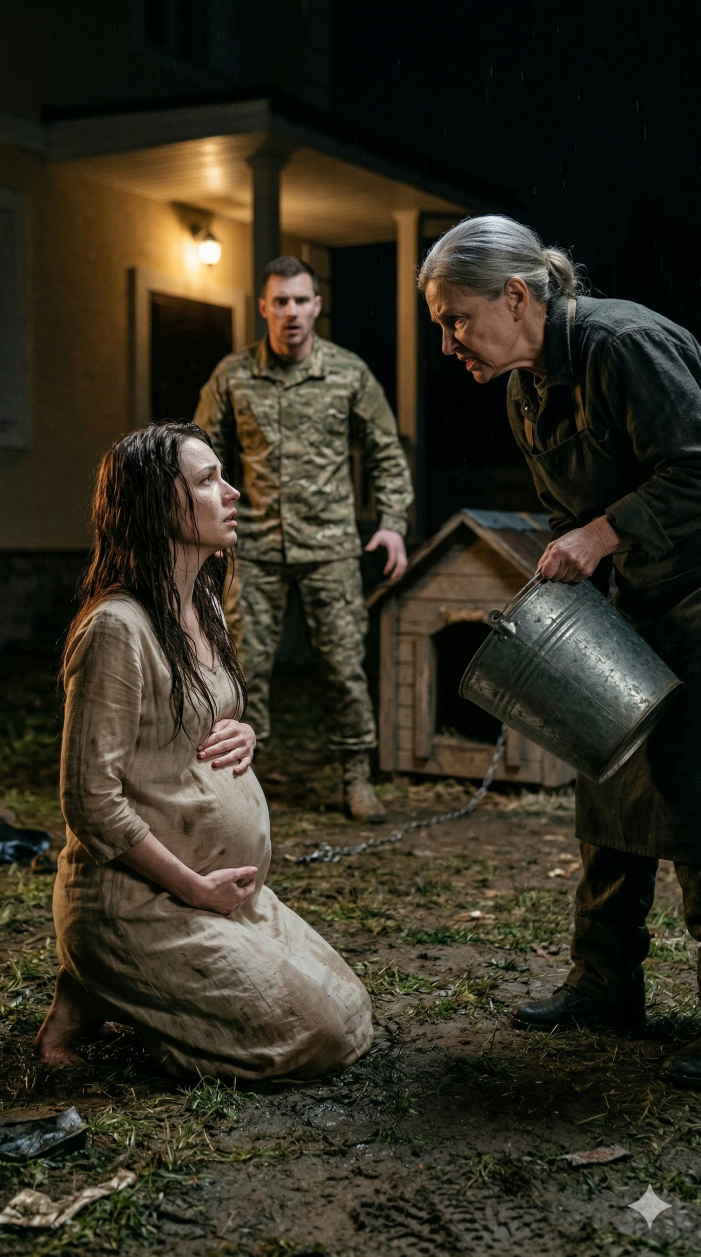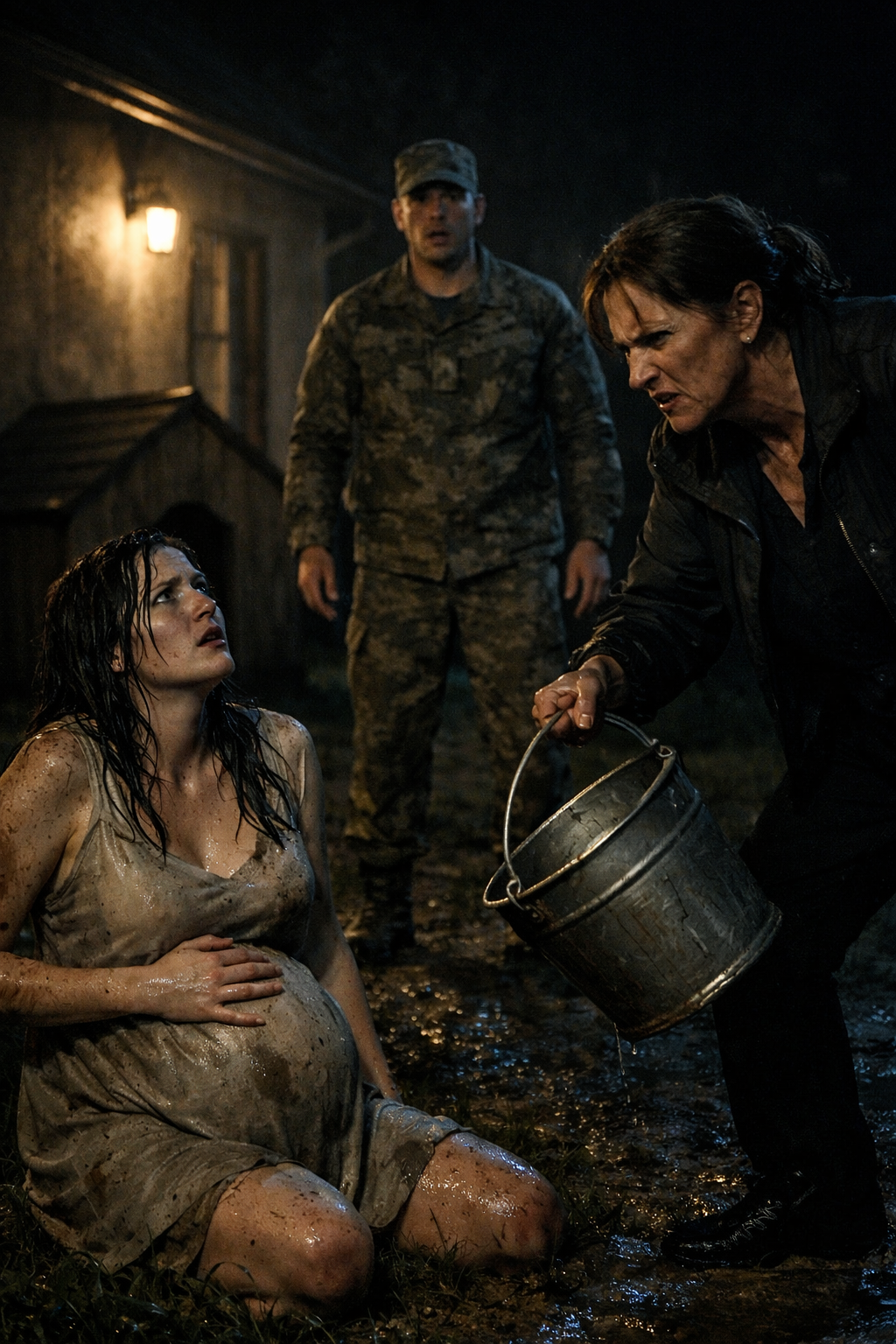 Standing over her was Margaret. My mother held an empty galvanized steel bucket, bits of crushed ice clinging to its base. Water spread across the concrete floor, soaking into the mattress beneath Elena.