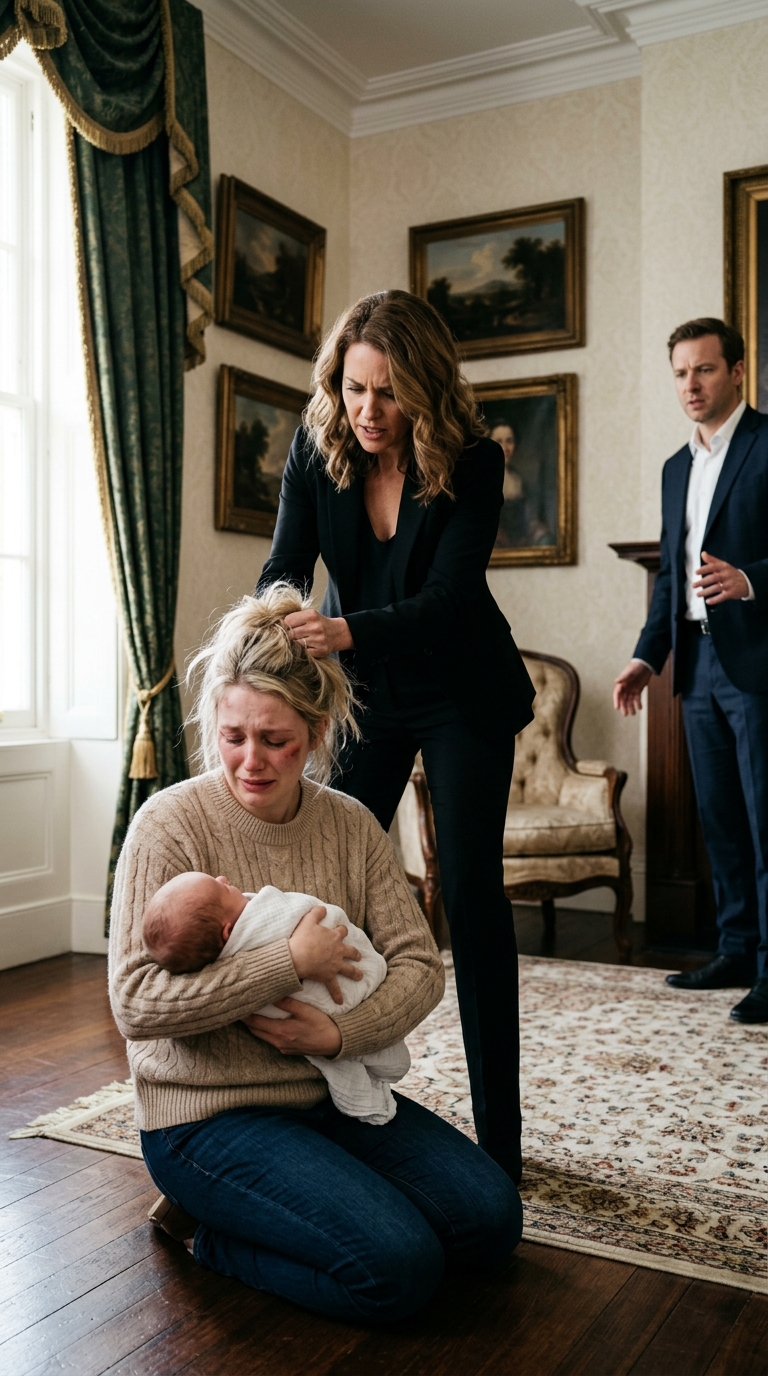 Then, as my vision faded and Noah’s cries echoed around us, Preston said, almost bored, “Let’s go.” Veronica wiped her hands on her coat and followed him out. The front door shut with a quiet click—soft, almost polite—while I lay there realizing the truth: this wasn’t a fight… it was planned.