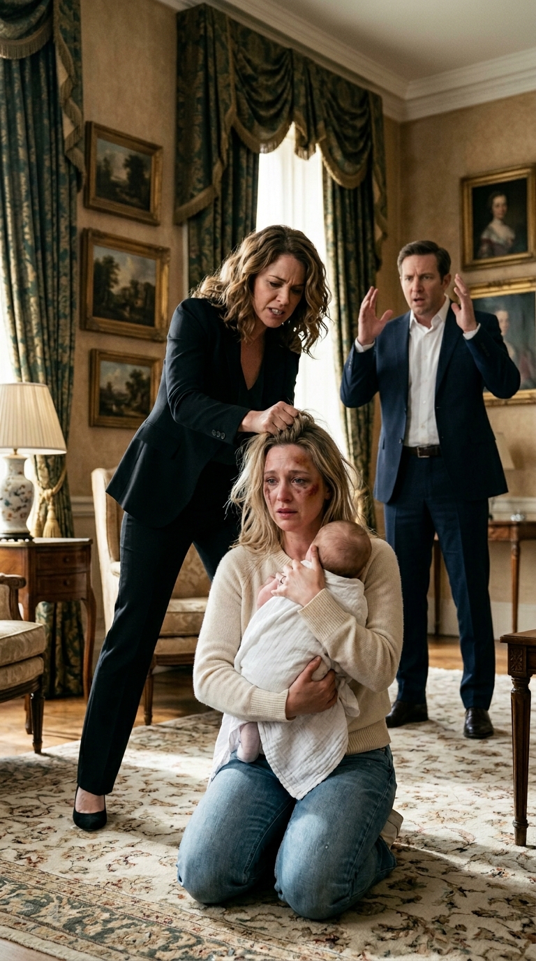 I barely processed her words before she lunged. The first hit burst across my cheek. The second snapped my head to the side. I staggered backward, instinctively curling around Noah, shielding him with my body. I heard myself pleading, “Please—my baby—stop!” but she didn’t stop. Blow after blow—eleven in total—pounded into my face and skull while the world narrowed to Noah’s breathing against my chest.