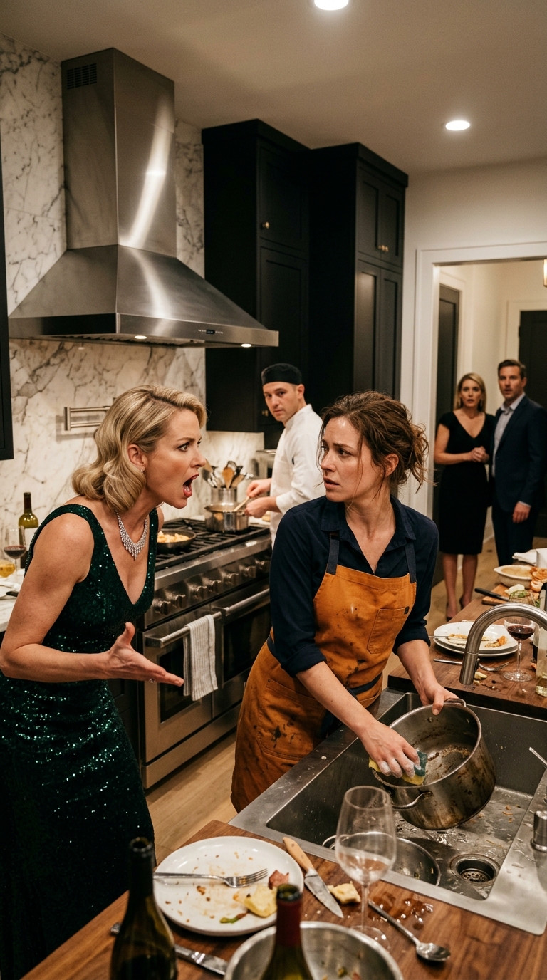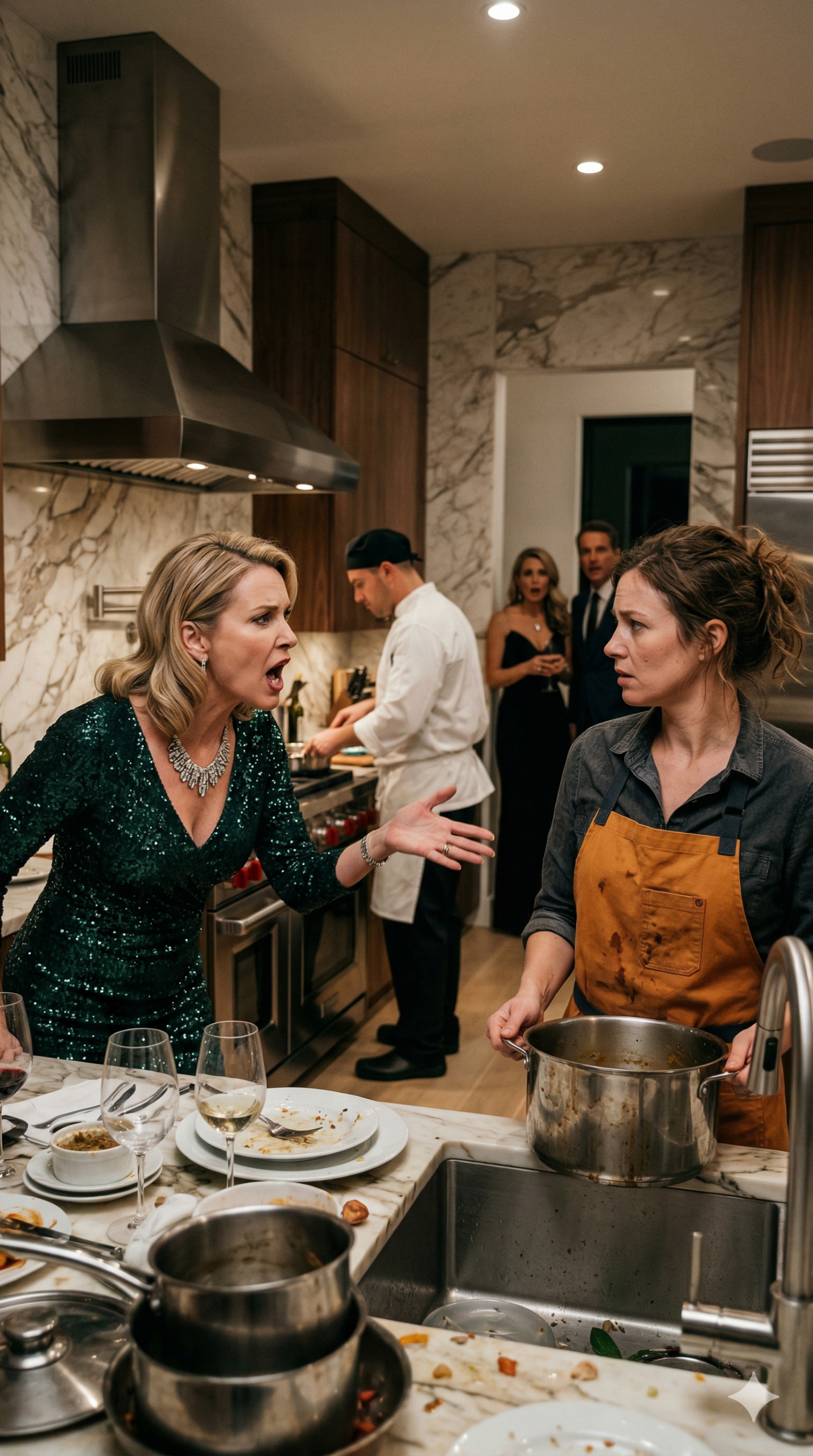 “She’s been downstairs,” I continued. “Washing your dishes. Cleaning up after you. Standing in a service kitchen like she doesn’t belong here.”
