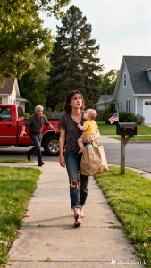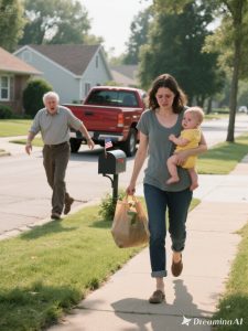 “Why isn’t it here with you?” He stepped closer, his shadow offering relief from the sun. “Why are you limping with groceries and a baby in this heat?”