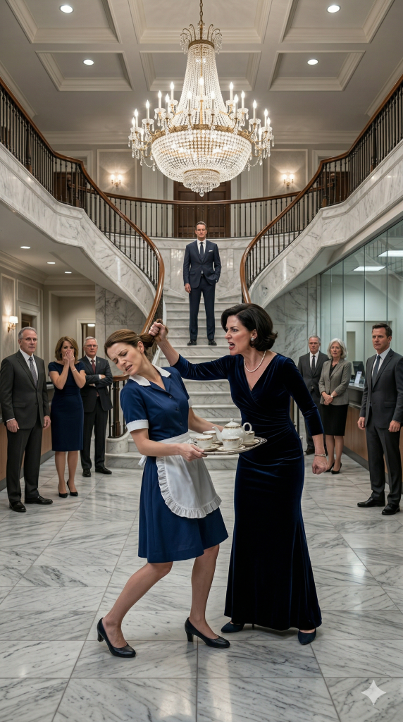 I felt it before I fully registered it—a sting shooting through my jaw as the echo bounced off glass walls and crystal chandeliers. For one suspended second, everything stopped. The light. The silence. Even the fountain beyond the floor-to-ceiling windows seemed to lose its voice.