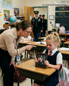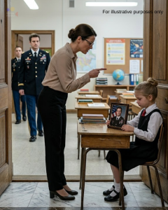 Lila reached into her backpack with shaking hands and pulled out a folded photo—her family at a ceremony, her father in dress uniform, her mother beside him in a simple dress, Lila between them beaming.