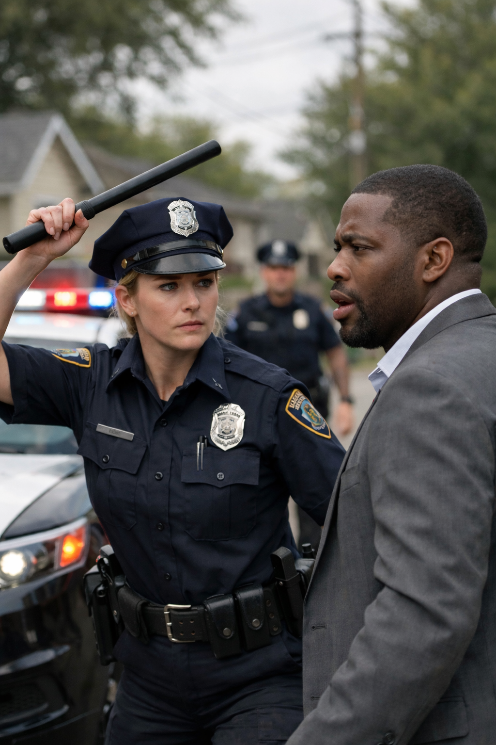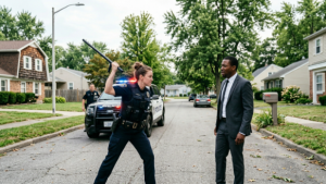 Her baton came out. One strike to his thigh dropped him to a knee. Another to his shoulder drove him forward. Andre grunted in pain but didn’t retaliate. He raised a hand instinctively—defensive, not aggressive.