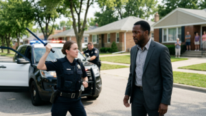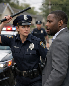 Home»Blog»“SHE PROFILING-STOPPED A WELL-DRESSED BLACK MAN, SWUNG THE BATON, AND WROTE “RESISTING”—UNTIL HIS BADGE MADE THE STATION GO SILENT”…