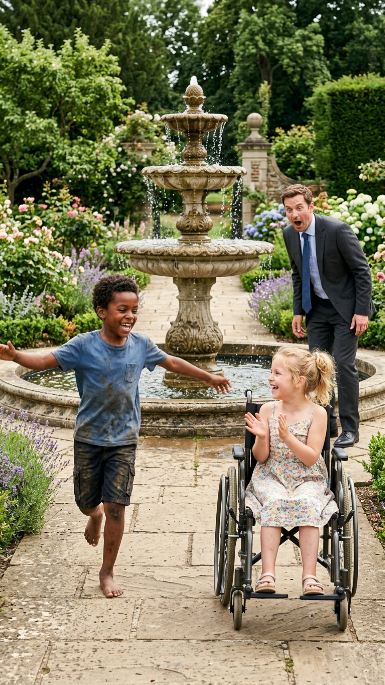 Home»Blog»THE BILLIONAIRE’S DAUGHTER IN A WHEELCHAIR WAS SILENT FOR MONTHS—THEN A HOMELESS BOY APPEARED IN THE GARDEN AND CHANGED EVERYTHING