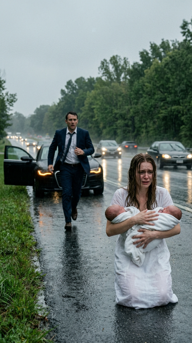 Rain crashed down like judgment along the deserted highway outside Asheville, North Carolina. It wasn’t a soft drizzle—it was a brutal storm, hammering the road and echoing the chaos inside Valerie Monroe’s chest.