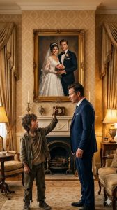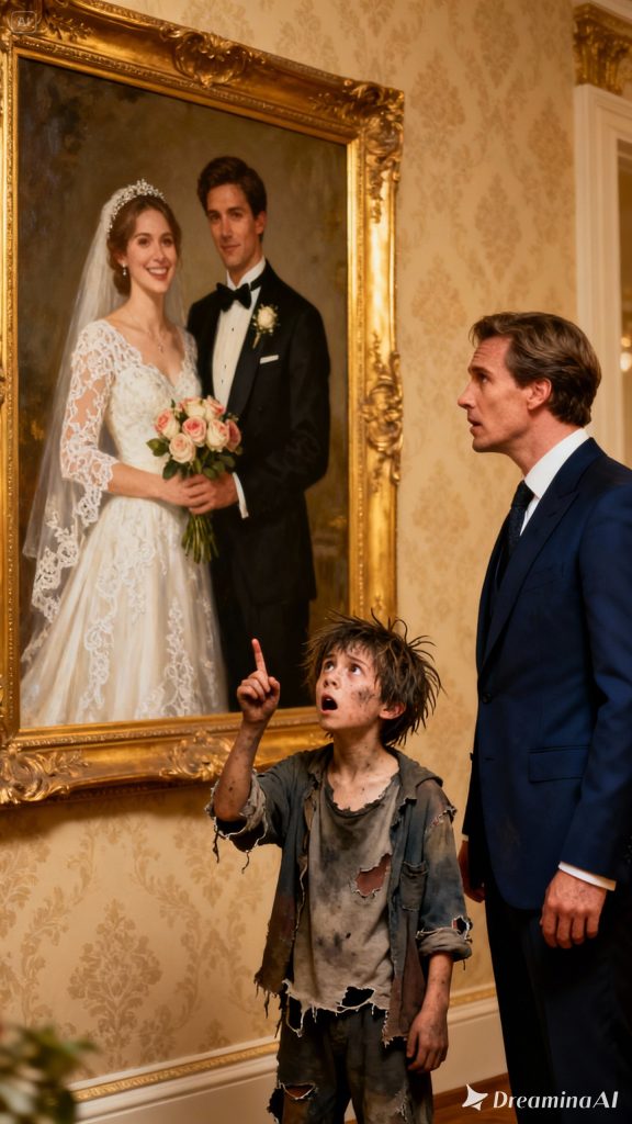 When a homeless boy pointed to a wedding portrait and whispered, “That’s my mom,” billionaire James Caldwell felt his world freeze in place.