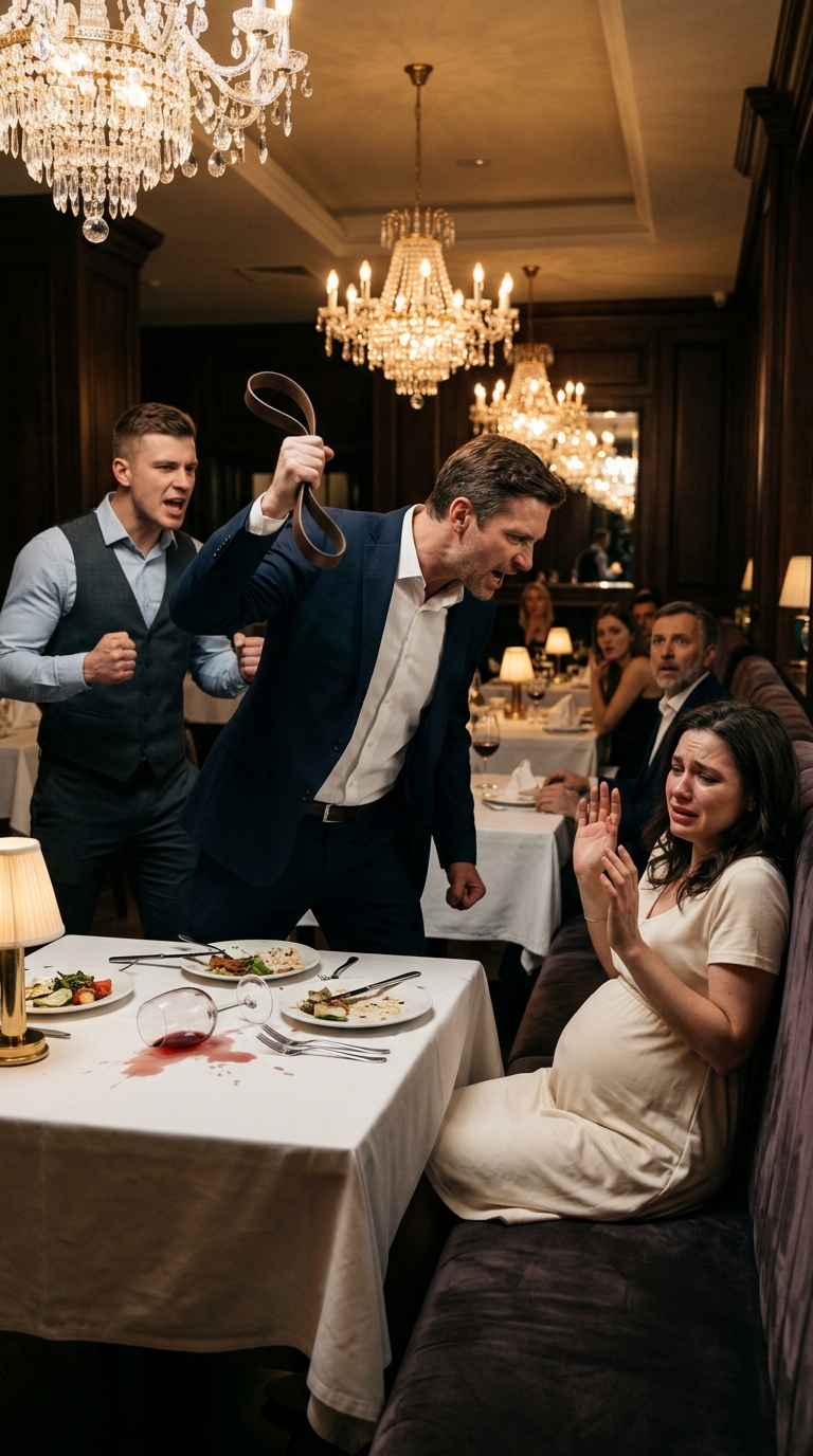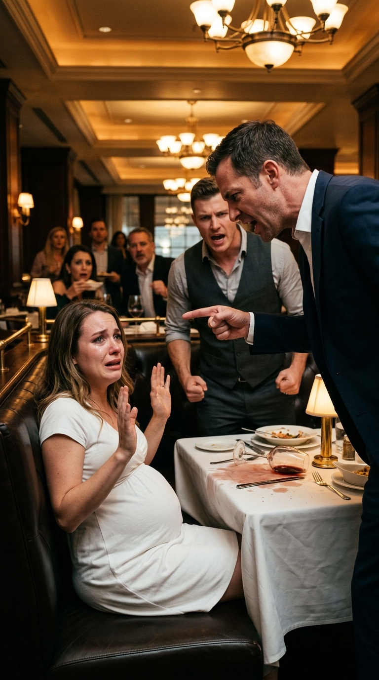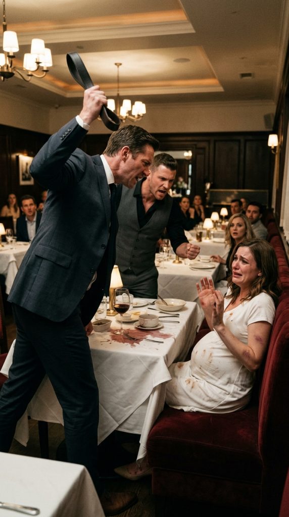 Sarah’s voice rose, drawing attention. Richard’s expression hardened. “You’re embarrassing yourself,” he snapped, and when she refused to back down, he struck her—hard—right there between the linen napkins and crystal glasses. The room fell silent. Sarah tasted blood and humiliation, and she felt the baby move as if startled. She stood, shaken by anger and fear, as Richard grabbed her wrist like she belonged to him. At that moment, a server stepped forward, placing himself between them, and said with quiet authority, “Let her go. Now.”